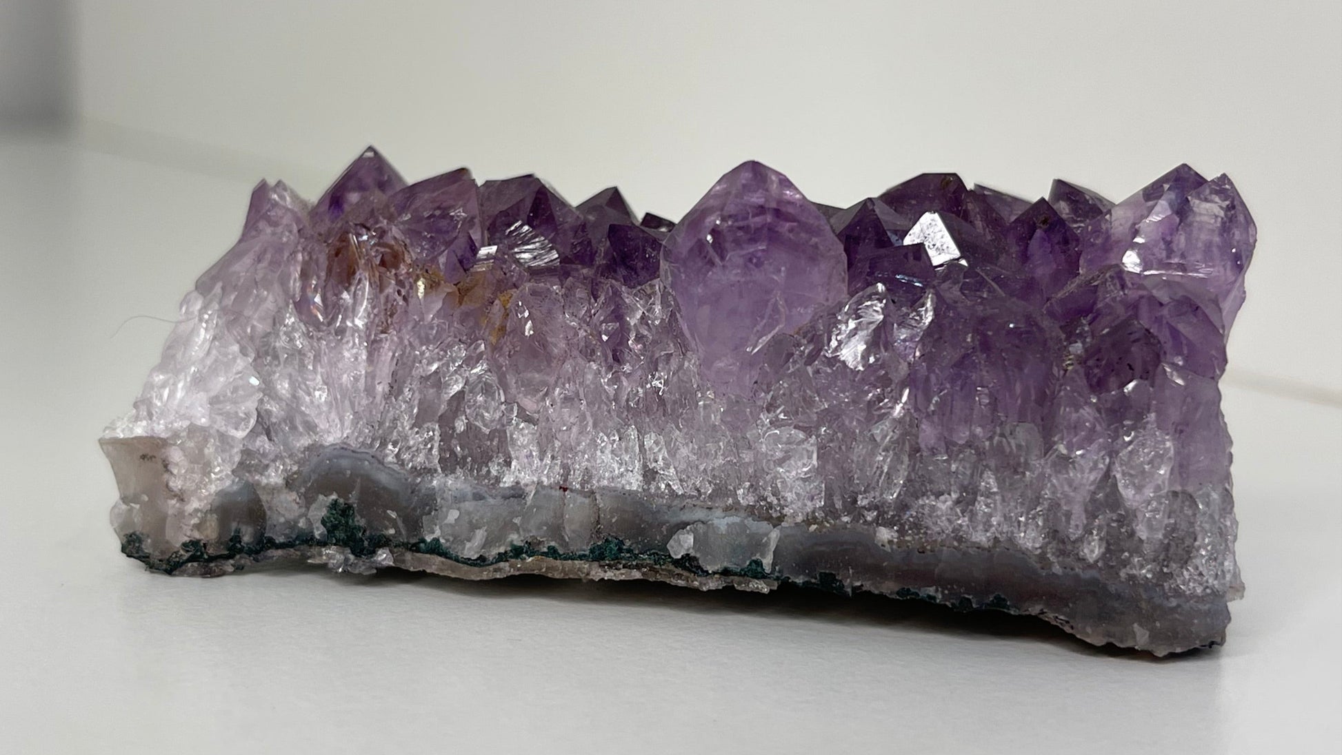 This stunning medium-deep purple Amethyst cluster has multi-facet points with some pretty rainbow reflects, perfect addition to have by your bedside for peace & calm