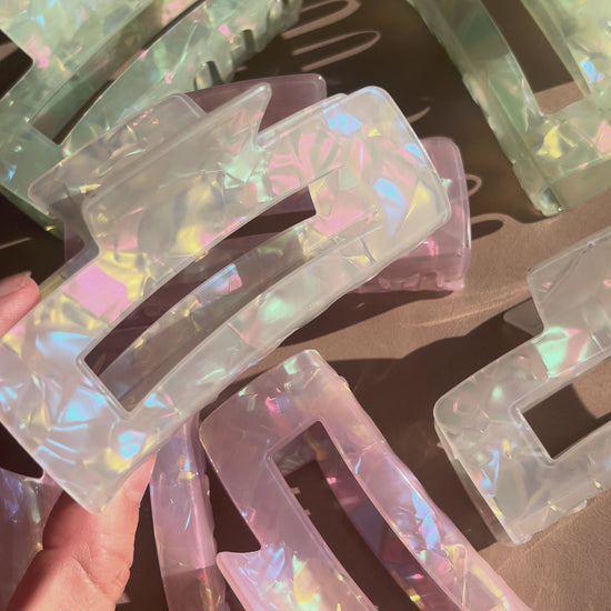 Our Pearl claw clips are designed to hold your hair securely while adding a soft, feminine touch to any outfit.