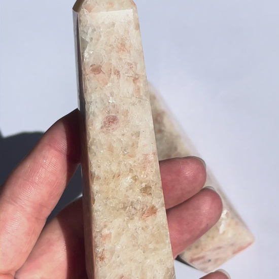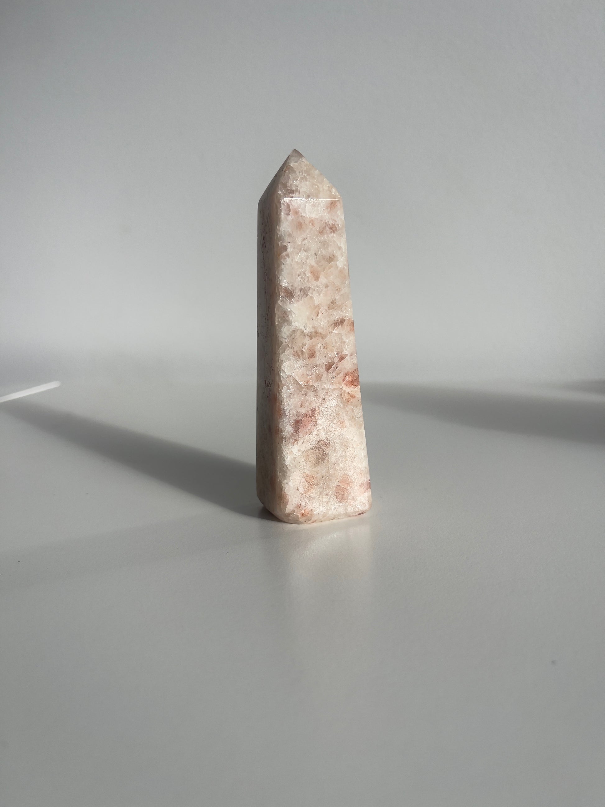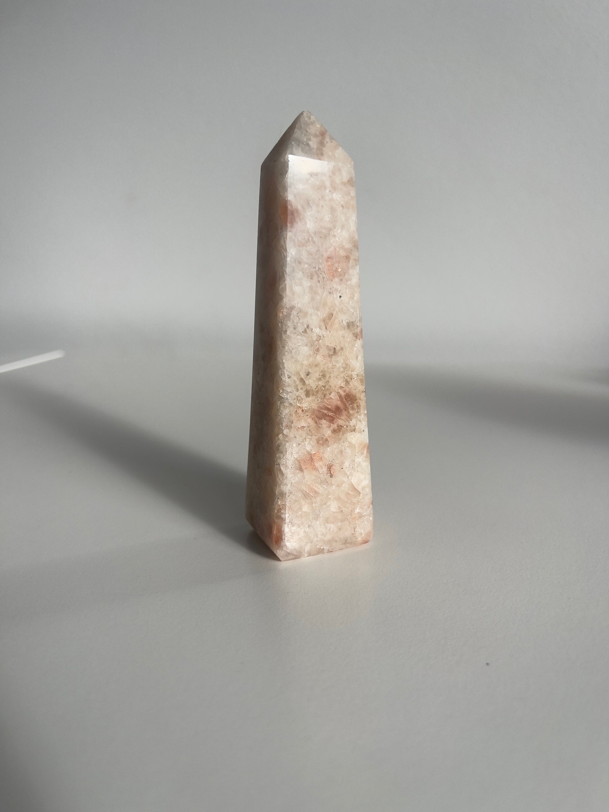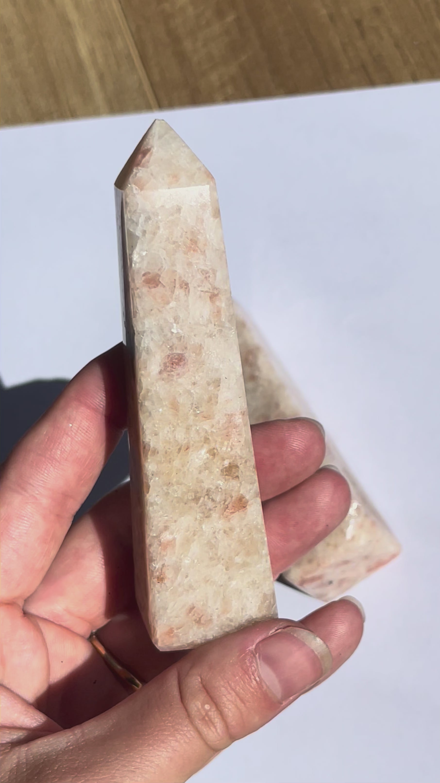 This stunning Sunstone Tower is a vibrant beacon of positivity, confidence, and radiant energy. With warm, peachy tones & a shimmering glow, it’s the ultimate “feel-good” crystal to lift your mood & brighten your space!